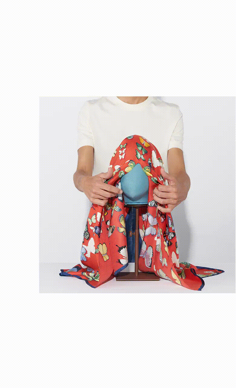 This butterfly motif is the project icon. The butterfly symbolism is based on metamorphosis, the chrysalis contains life’s potential and the emerging butterfly is a symbol of rebirth. And it is from the cocoons that silk is born, this extraordinary noble and natural fibre, at the root of our creations. The design communicates freedom and lightness with multicoloured butterflies that seem to hover in the air.